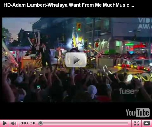 O glamour boy Adam Lambert, com seu novo cabelo estilo Rihanna, performou “Whataya Want From Me”.