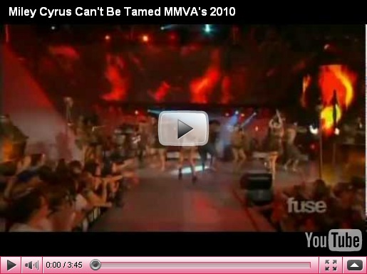 Adoro as entrevistas com a Miley, mostra atitude, um tapa de luvas em Britney. Sempre tem respostas pra qualquer coisa! Só o caso com Perez Hilton foi meio que não tocado, já que a foto era mesmo FAKE. A new diva aprensentou seu hit single "Can't Be Tamed". Vejá: